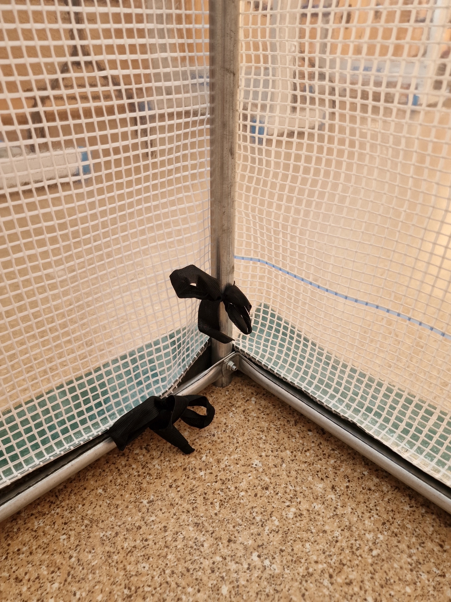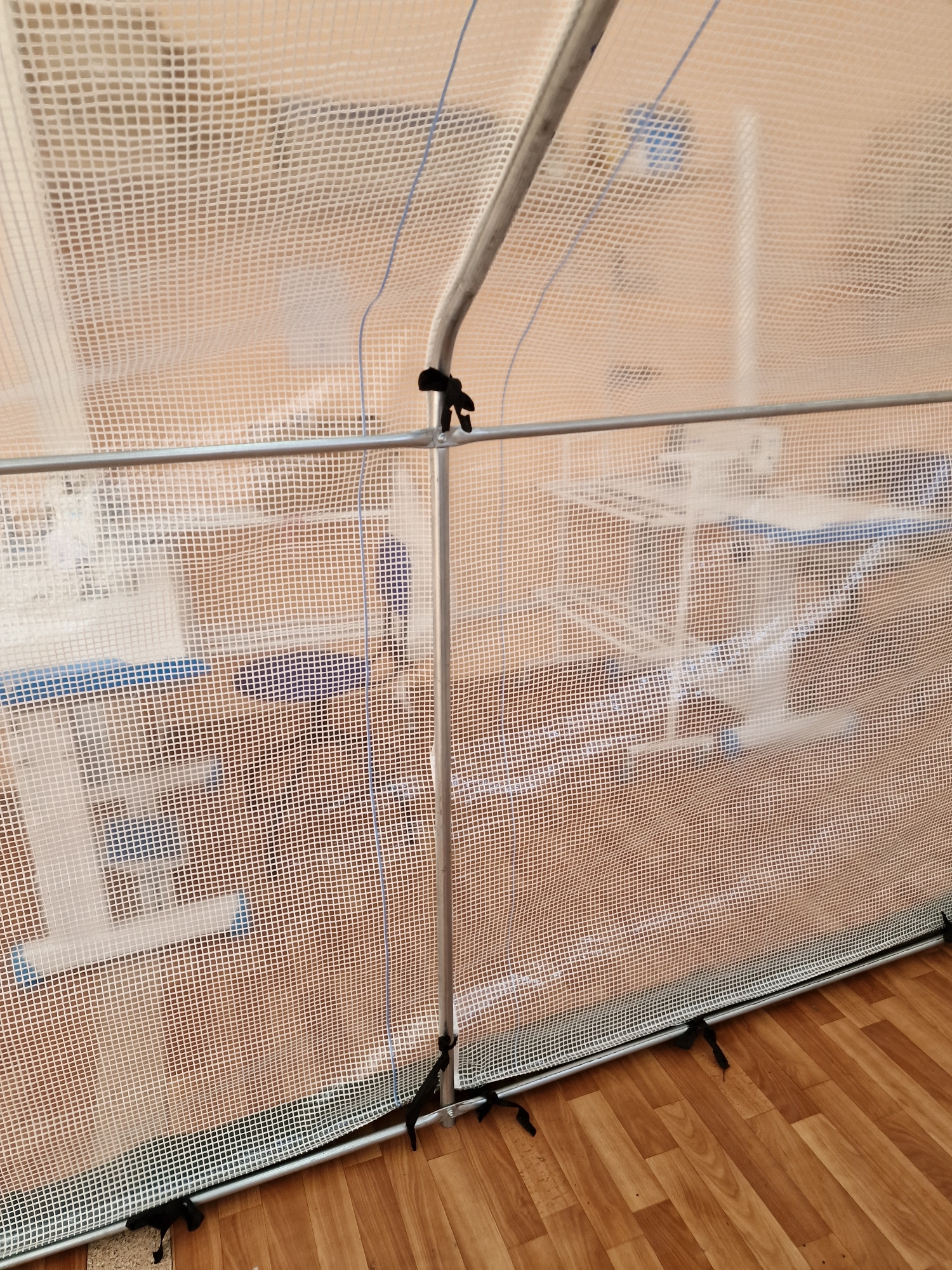 Чехол одевается поверх каркаса и крепится к нему специальными вшитыми завязками. Дверь и форточка чехла - на молнии.