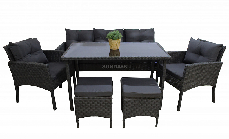 У нас вы найдёте подушки, предназначенные для комплекта садовой плетёной мебели LUC-75, в комплекте находятся подушки для дивана, двух кресел, а также двух пуфов, они выполнены в сером цвете. Такие подушки подойдут для кресел, ширина которых составляет 59,5 см, с глубиной 66 см, а также высотой 76 см. также есть подушки для дивана с шириной 159 см, глубиной 66 см, а высотой 76 см. Подушки подойдут для пуфа, шириной 37,5 см, глубиной 37,5 см, высотой 38 см.