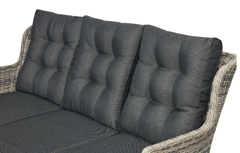 У нас вы можете приобрести комплект подушек, предназначенных для садовой мебели, в комплекте находится пять подушек для сидения размером 60 на 64 см и толщиной 10 см, три подушки для спины размером 61 на 70 см и толщиной 8 см, а также две подушки для спины размером 56 на 70 см и толщиной 8 см. У них тёмно-серый цвет, изготовлены такие подушки из полиэстера.