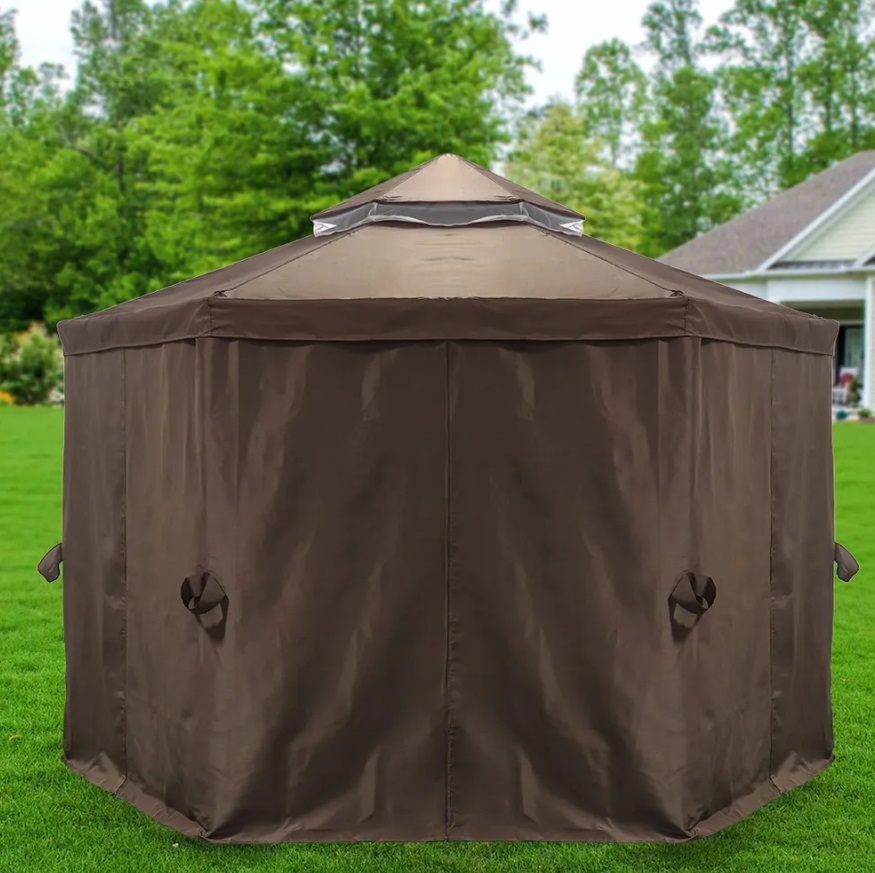 Мы предлагаем вам купить запасной комплект для шатра беседки Gexagon-3. Данный комплект нужен для того, чтобы заменить покрытие у шестиугольного шатра. Изготовлен комплект из водоотталкивающего материала полиэстер, у него есть антимоскитная защита, а также шесть плотных боковых штор, размер которых составляет 1,75 х 1,75 м. У москитных сеток и штор есть очень удобные застёжки-молнии. Данное покрытие имеет бежевый цвет, садовая беседка имеет площадь 7,9 м. Изготовлены шторы из водоотталкивающего полиэстера с плотностью 93 г, стенки из полиэстера 93 г, а москитные сетки из полиэстера 35 г.
