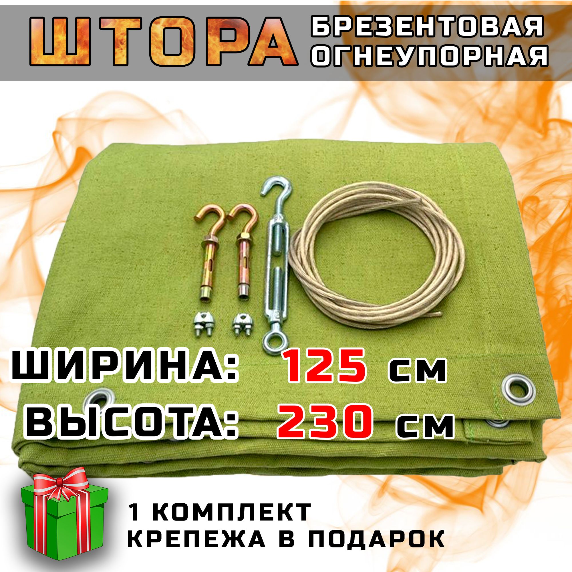 Штора изготовлена из усиленного огнеупорного брезента.