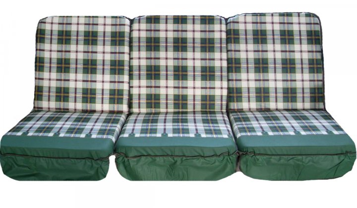 Для того, чтобы нахождение на садовой качели было более комфортным, рекомендуем вам использовать специальные подушки, предназначенные для садовой качели. В комплекте находятся три отдельные подушки, у каждой есть спинка и сидения. Сидение изготовлено из бязи, а ткань чехла изготовлена из хлопка и синтетической ткани. Чехол с лёгкостью можно снять для того, чтобы его постирать, в качестве наполнителя используется поролон. Длина сидения составляет 168 см. На каждой подушке есть специальные вставки для того, чтобы надёжно зафиксировать изделие.