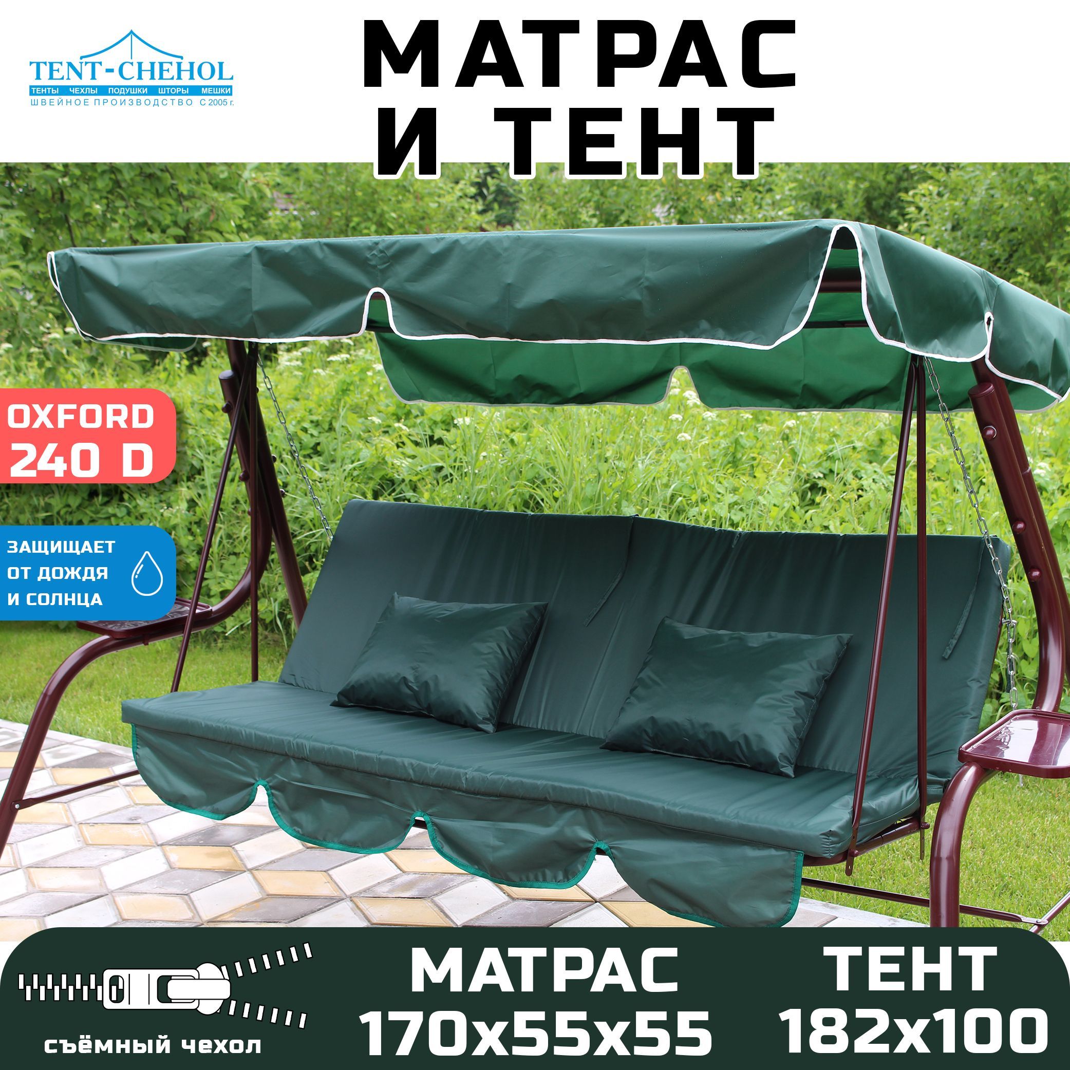 Тент и матрас для садовых качелей, 182х100 и 170х55х55 (оксфорд240 еловый)