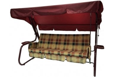 Компания «Тент Чехол» предлагает купить недорого тент для качелей Калифорния +10 240x145, бордовый, зеленый. Крыша полностью соответствует размерам и конструктивным особенностям данной модели садовых качелей.